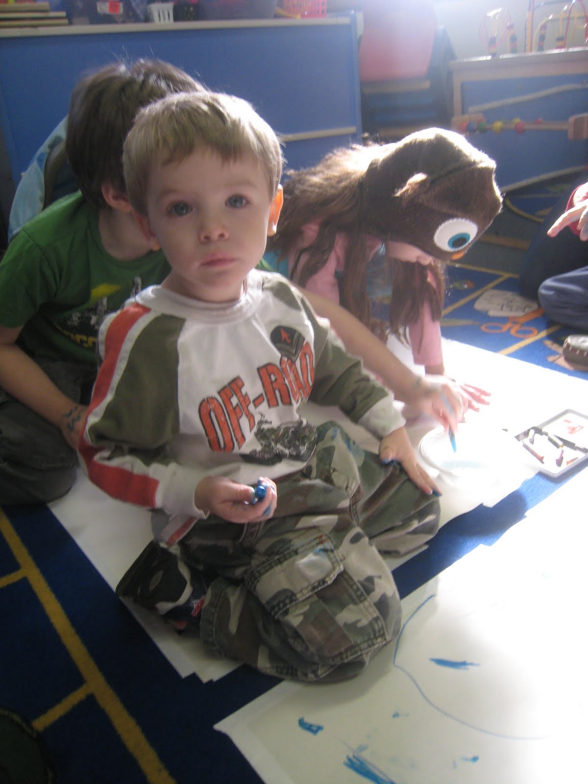 Hello! Today's Family Place Workshop featured Aleta Yarrow, Director of Interpretive Programs at the Everhart Museum, and her water-soluble crayons! Many moms and kiddos were here to visit and play this morning. Following a quick, cute story about a little girl who gets more paint on herself than on her paper, we got down to business on the floor as we experimented with Aleta's cool crayons. As is age-appropriate, we focused on the process of creating art, rather than on the finished art product. We had a great time, as you'll see in these photos:
